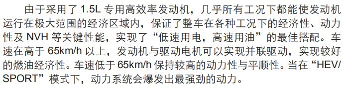 参考秦plus用户手册前言部分,车速在高于65km/h以上,发动机与驱动电机可以实现并联驱动。