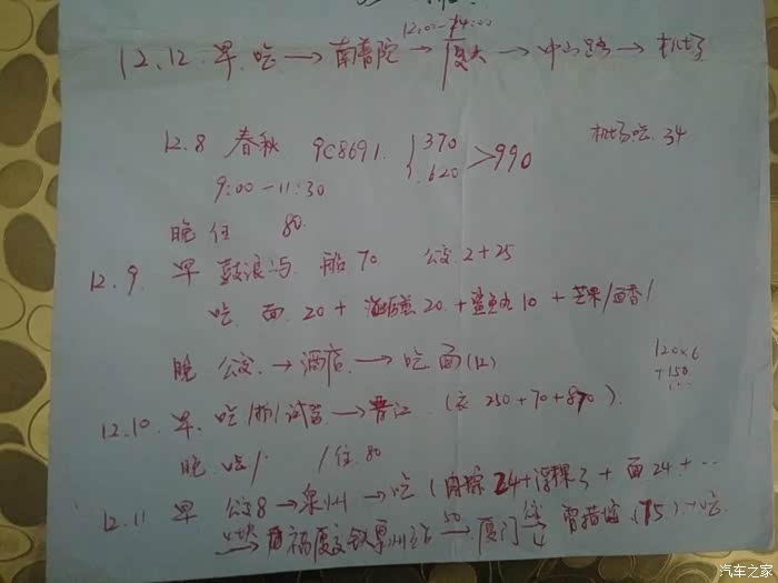 详细用车花销如下: