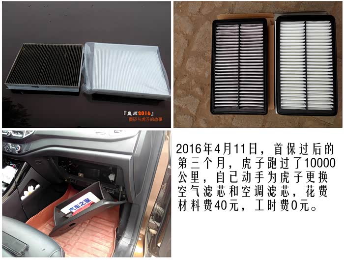 保养费用:610元,一年中做了3次保养,包括免费的首保。其中自己买机油花费200元,买空气滤芯和空调滤芯花费120元,买防冻液花费10元。找人换机油机滤一次花费20元,在4S店保养一次花费260元。其他自己能动手的都是自己动手。