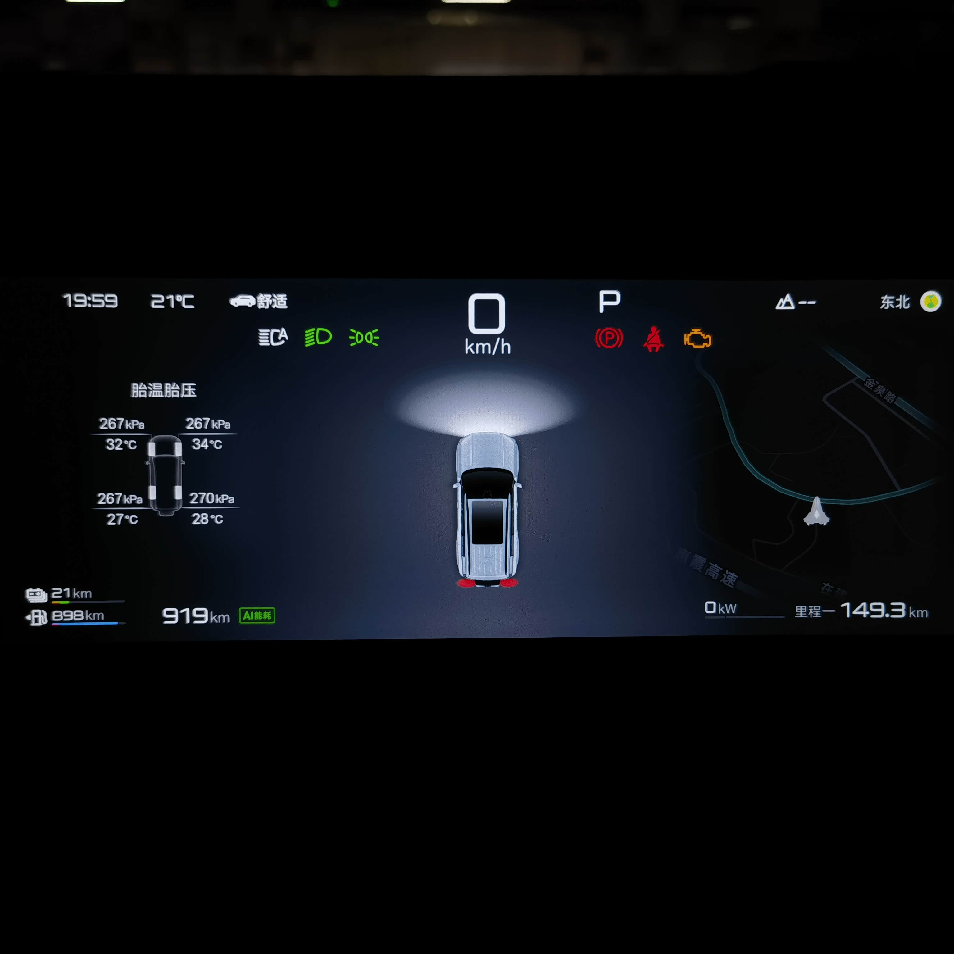 今天驱车去参观广州车展,全天行驶149.3km(里程一),高速111.5km(里程二),城区37.8km,平均车速54,EV模式跑到续航里程剩20km时,切换到HEV,耗油2.8L。总结:预计纯电能跑140km,达成率74%。