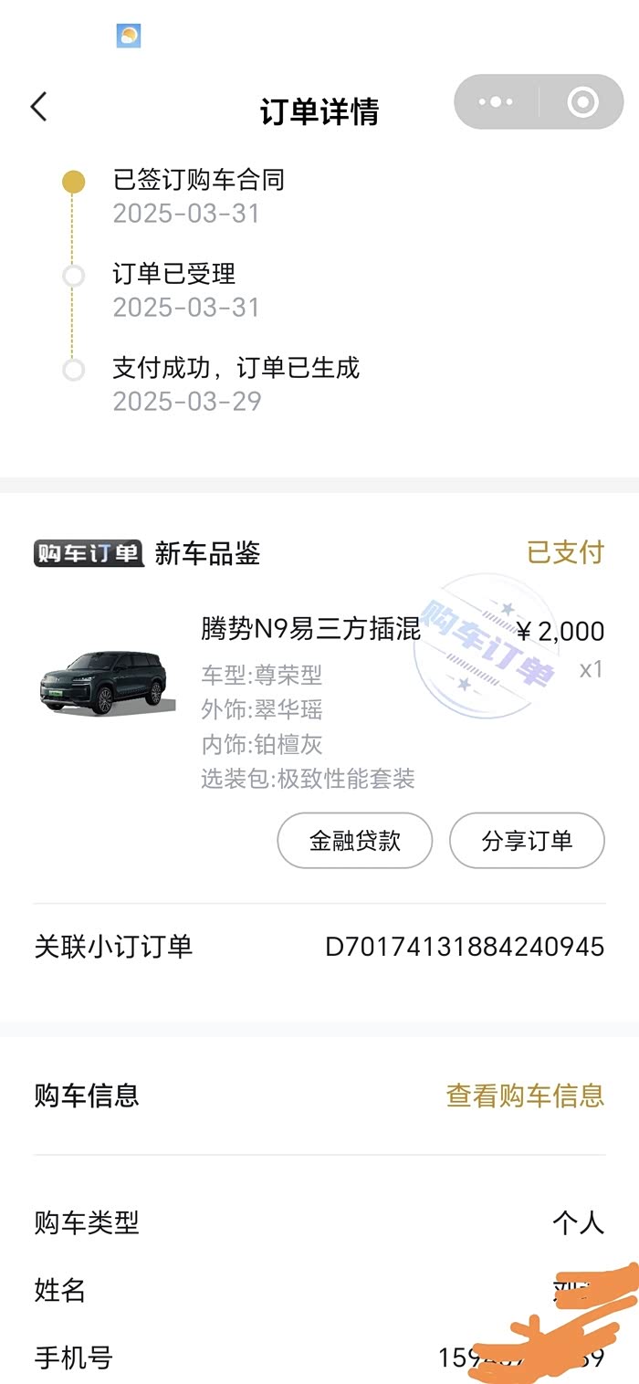 作为一名腾势 N9 的准车主,自从这个车的消息披露出来就在关注这款车,再从盲订到大订,对车子还是十分看好的,但是还是发现点美中不足的地方。我买这个车主要原因就是冲着空间买的,特别是三排空间,相信很多车友也跟我差不多吧!对比了很多车型 N9 的三排空间纵向距离是最好的,但是坐着就是不宽敞,虽然调整好二排座椅后三排乘客膝盖距离二排座椅有两拳的空间,但是由于二排座椅的离地间隙过小,造成了三排乘客的脚没地方安放,实际乘坐舒适度极度降低。这个小遗憾希望得到厂家的足够重视,相信厂家能够完美解决。💪💪💪