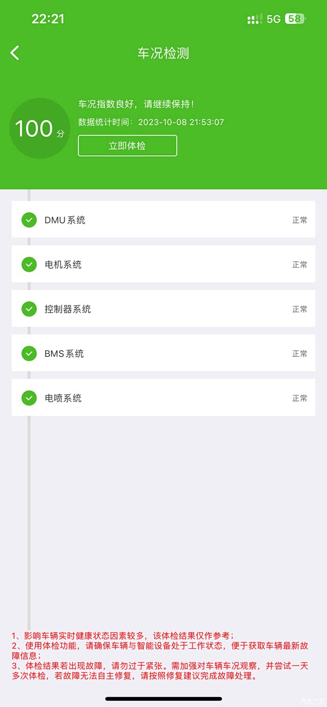手机app检测了一下没有任何故障码,全部绿色。
