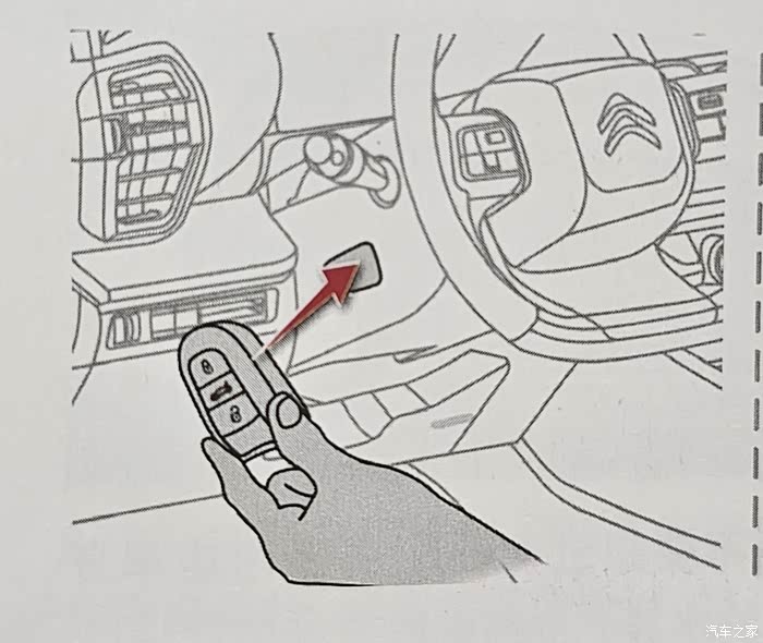 当钥匙处于正确区域,但系统无法检测到,或电子钥匙电池电量不足时,可以将钥匙放置转向柱上的电子钥匙阅读器来启动发动机。