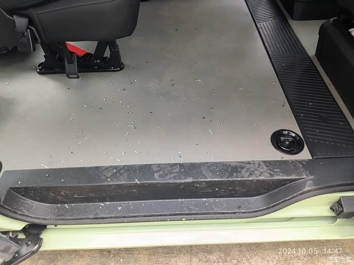 4.除了第一张图是事故发生时的图片,后面5张都是拿到车时的图片,我在送车前已经把车里车外的玻璃打扫得干干净净了,结果维修后拿到的车里面居然是一地玻璃,其他喷漆时的残留大家见图