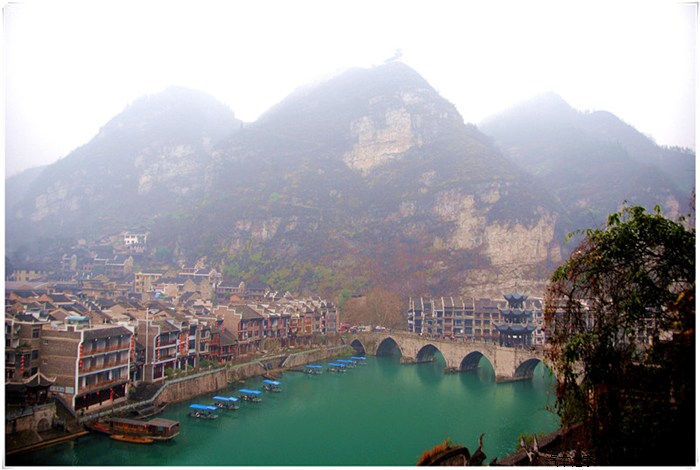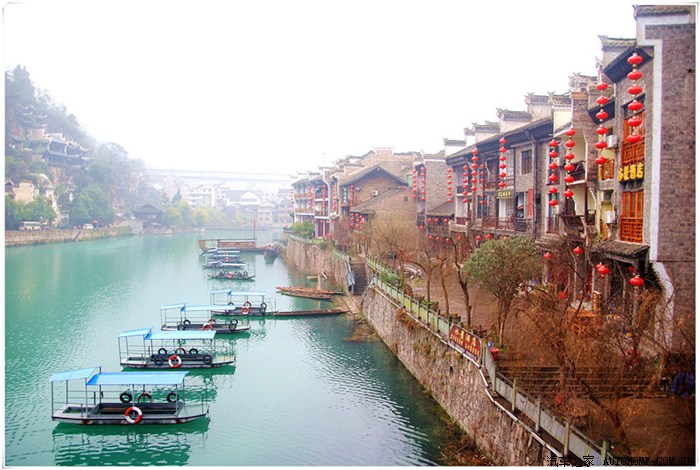 小镇地面上的石板正在无声的痛斥着汽车的行走,松动的石板正一张一合的呐喊着,仿佛在为自己的命运而抗争,但是也无济于事。江面上停泊的小船摇摆着,轻笑着,既在为自己的经历而窃喜,又在享受碧绿河水的滋润。舞阳河穿城而过,环绕着小镇,为小镇的生息发展带来资源,也为小镇的发展作出巨大的贡献。曾经贵州的重要交通枢纽,镇远早已完成了很重要的历史使命,但是它留下来的功绩令人永远无法忘记。