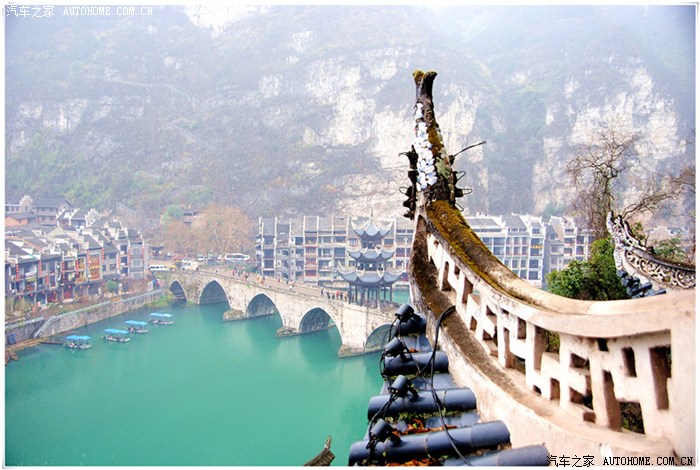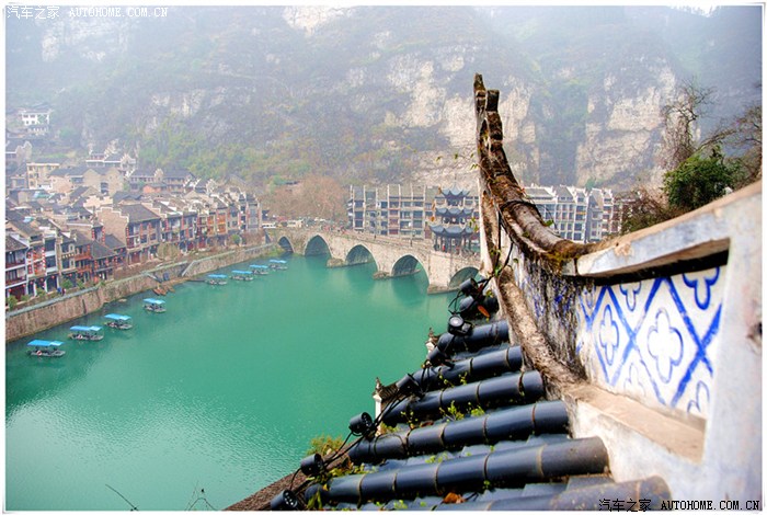 踏入镇远大门的那一刻,我忽然有了一种感觉,一种想翱翔于天际的感觉,宽广而静谧,心在此飞翔,翱翔于天际,不亦快哉?心中正思考着,但是又有一种熟悉扑面而来,哦,徽派建筑。江南小镇完美的展现在了眼底,屋檐斜上云霄,直指天空;小桥跨河而过,小巧玲珑;河水潺潺而下,平静壮阔,这就是江南的感觉啊!瞬间心醉了。