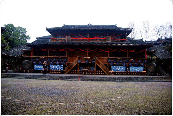 出来则是一个古老的戏台,据说至今曾在使用,可真是坚固耐用啊