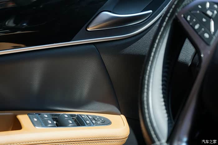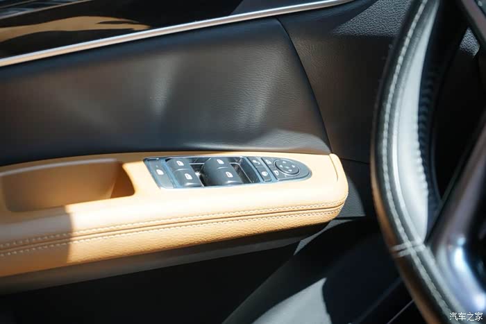 这张照片——一闪而过的木纹内饰片,说起来整车都有皮质包裹着,进到车子档次感一下次就提升了不少。