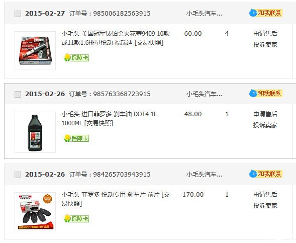 于是某青那网购了菲罗多刹车油和刹车片。实际上本来不打算换火花塞的,车子点火也没什么大问题,力度也还好。不过还是偶尔出现了“冲车”(就是像节气门脏了时候的那别车的感觉),所以想着是不是火花塞也换一下能不能好点。这次索性都换了吧,于是又选了四只冠军9409的火花塞,铱铂金。