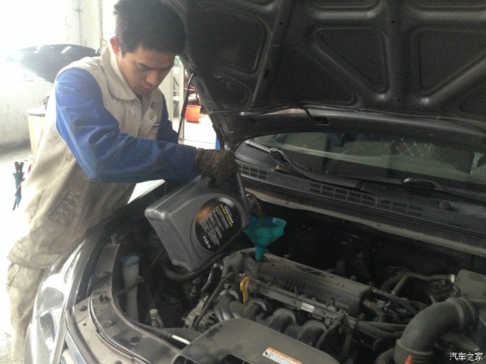 按照惯例,先放机油。已经7000多公里了,机油已经变的很黑,这机油的质量比较一般。