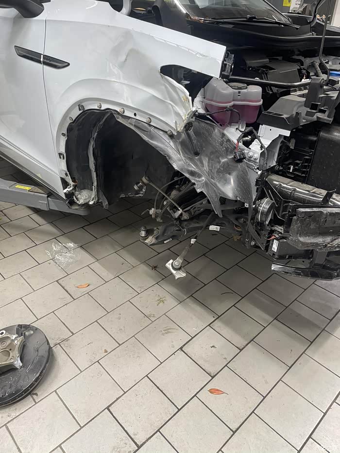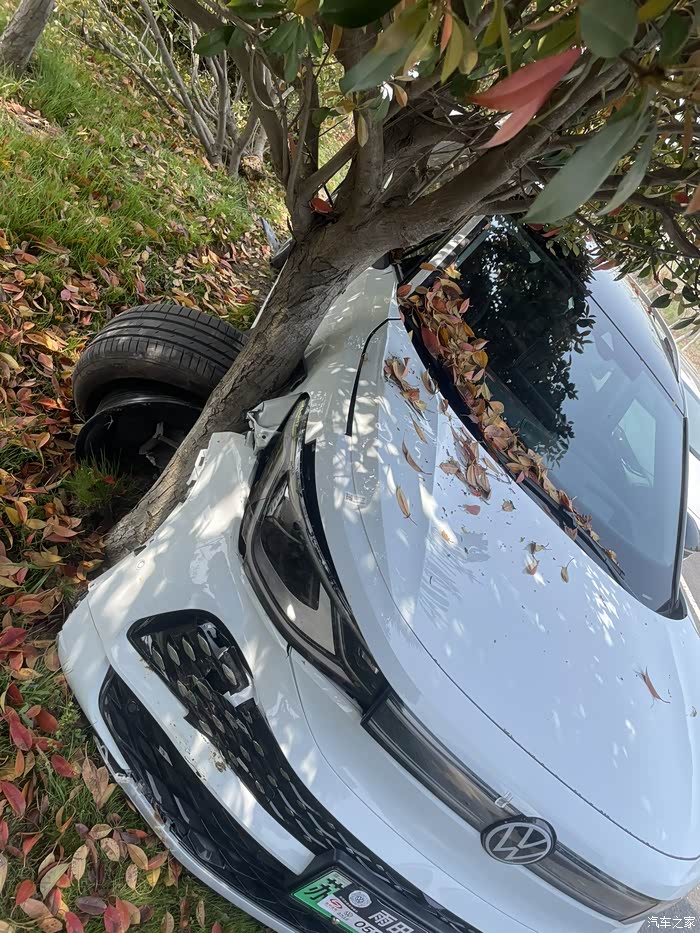 2个轮子全废了,撞到树上安全气囊没有弹出。