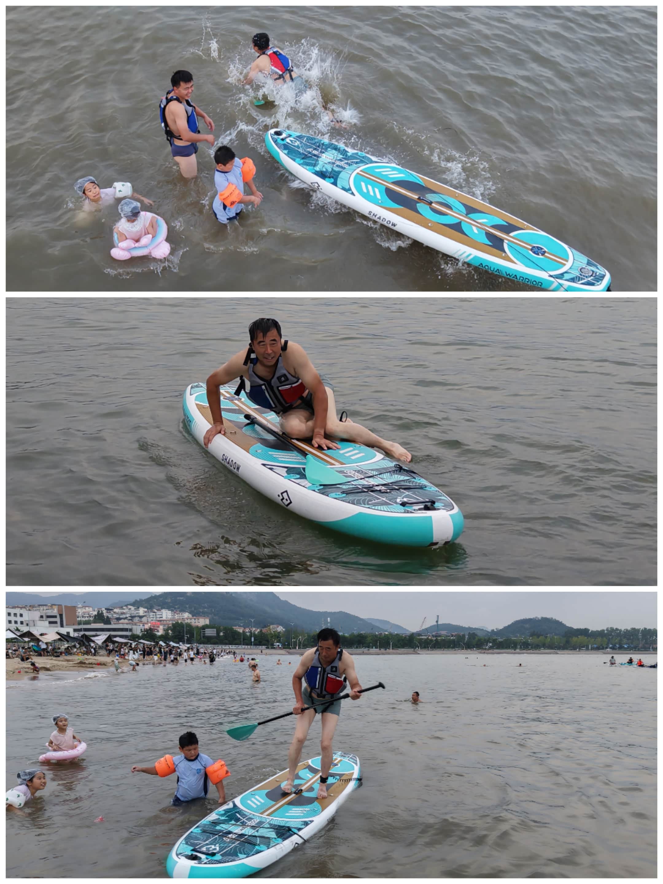 在海边租了个桨板耍耍,我们爷俩纯新手,人老板简单教了一下要领后,全凭自己悟了,反正就是上一秒还站外上面好好的,下一秒基本上就是不知道怎么掉下去了