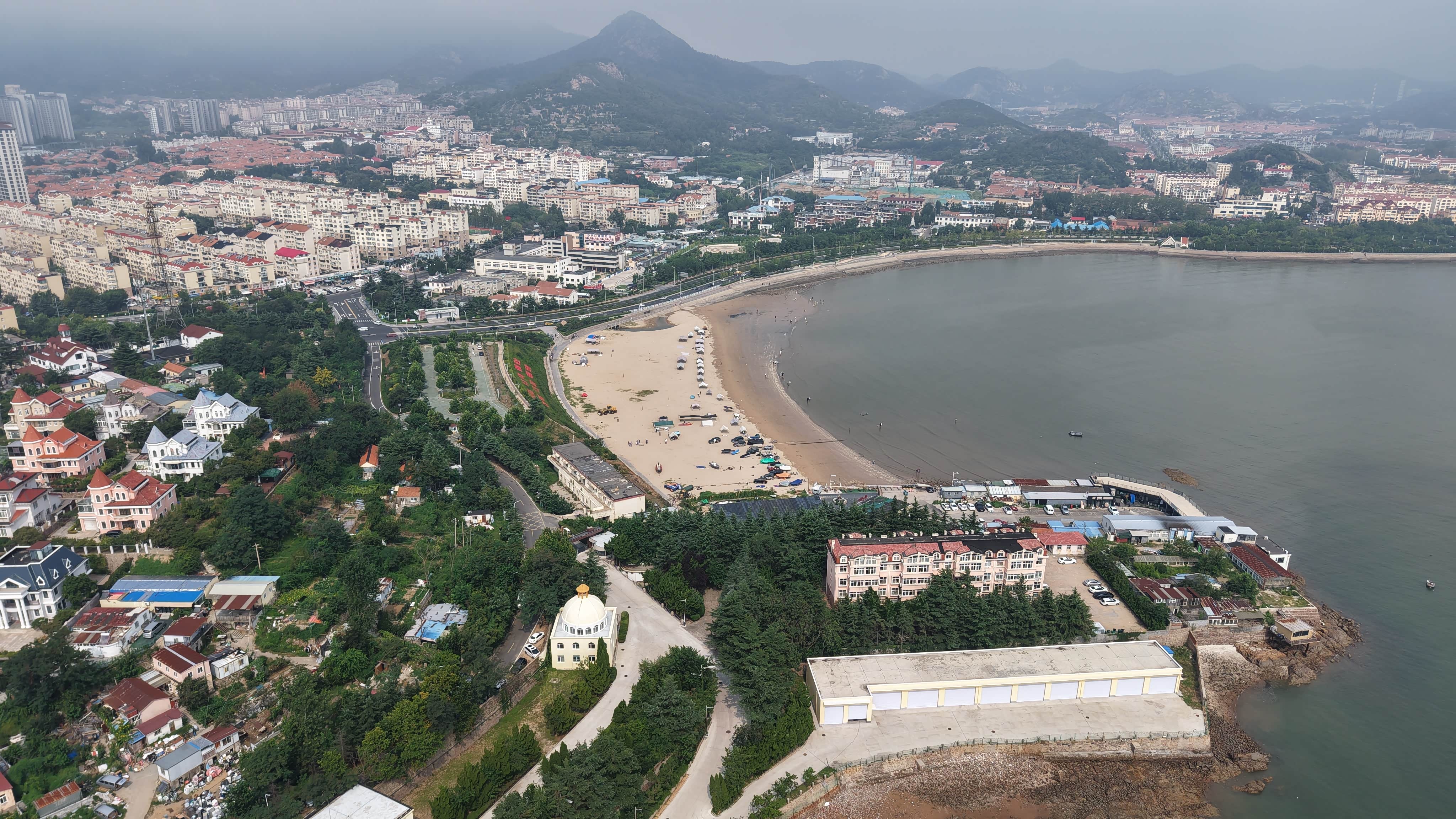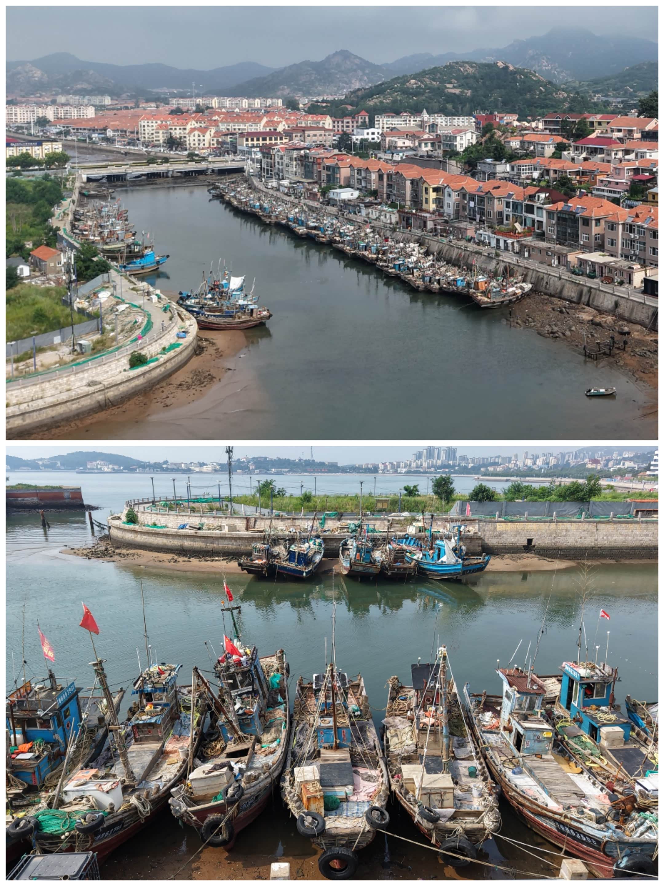 一晃到了第二天上午,昨晚来的比较晚,也没能好好的欣赏一下风景,打开窗帘映入眼帘的首先是一排排的渔船,整齐的摆放在一起,静待开海之时,百舸争流,奋楫者先,用无人机飞起来看一下周围的环境,原来我们住的这个位置正是入海口——沙子口社区所在地