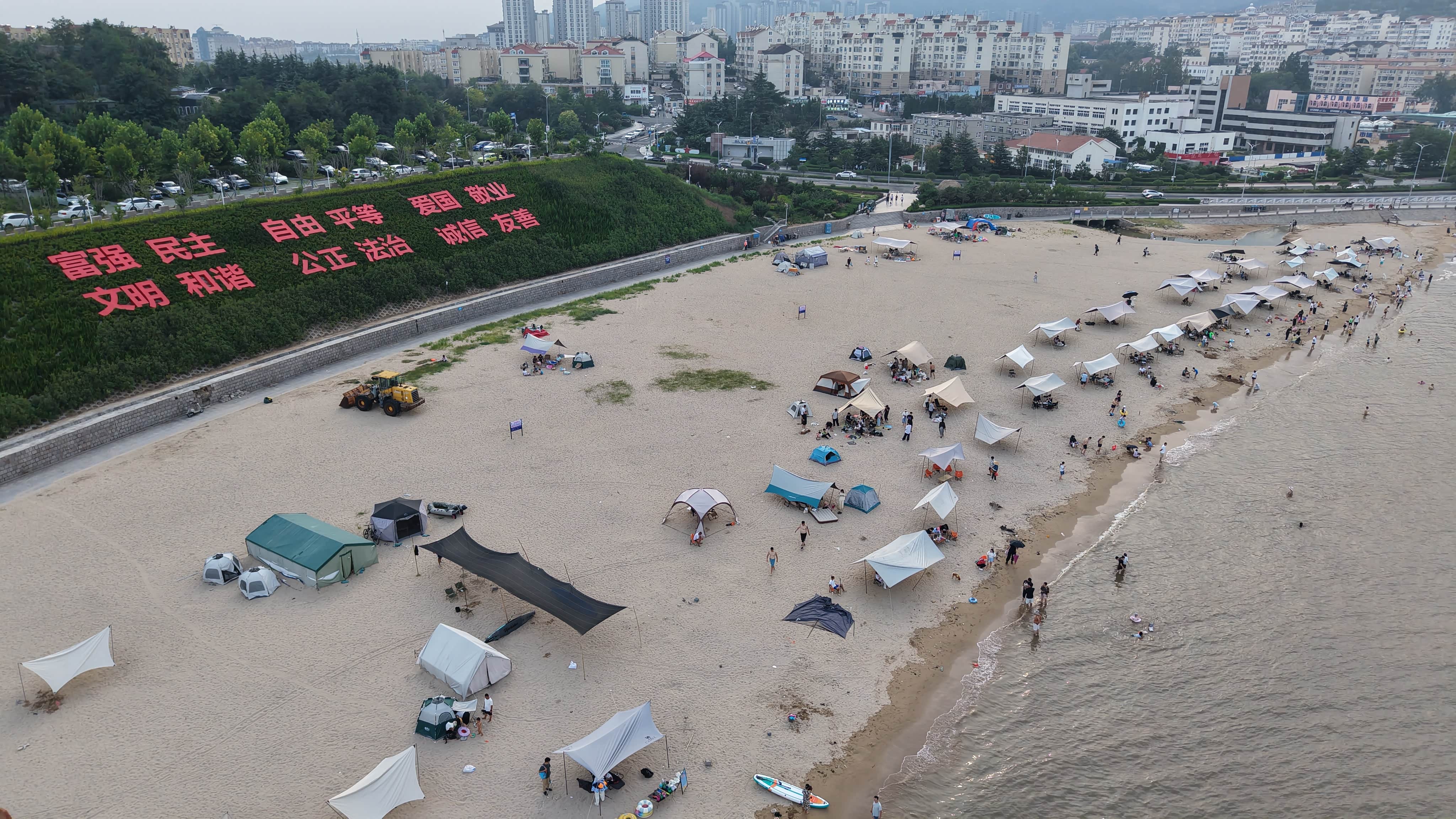 今天的天气实在是给力,烈阳像是羞涩的孩子,悄悄躲进了云朵的怀抱,没有了盛夏惯有的毒辣阳光,海风轻轻拂过沙滩,带着丝丝凉意,连时光都慢了下来,此刻的沙子口海滩,连呼吸都是悠闲的