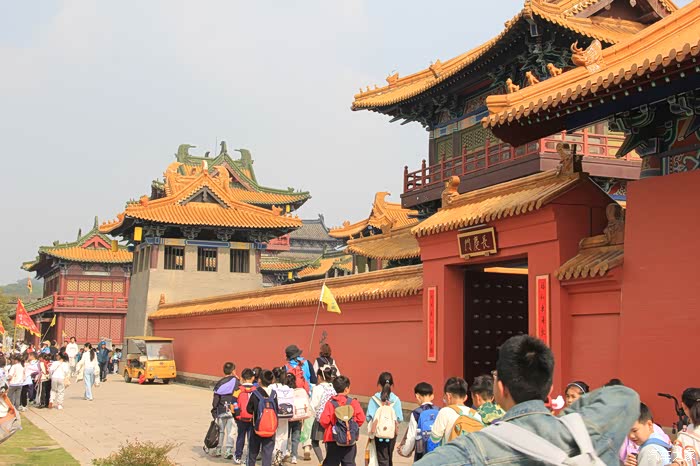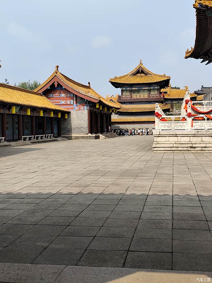 水浒城以仿宋建筑群为主,景区分为州县区、京城区和梁山区三大主体景观区,细致还原了《水浒传》中宋代的市井风貌与宫廷格局。其中宋皇宫建筑群规模宏大,黄色的琉璃瓦在阳光下熠熠生辉,令人印象深刻。