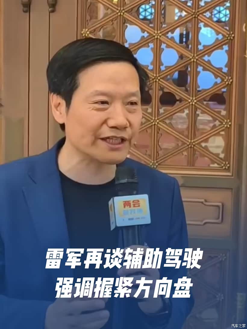 在谈到汽车辅助驾驶时,雷军强调一定要握住方向盘,直言目前辅助驾驶系统还没有到 L3、L4 水平。