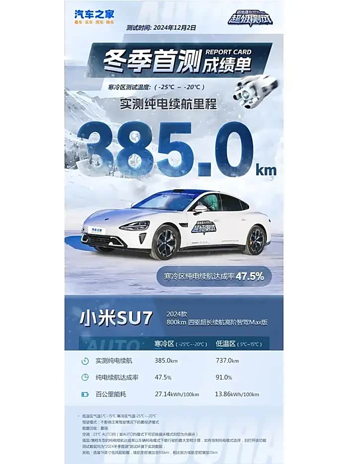 然后就是还有小米su7的快充技术,在冬季低温的情况下,他这个快充功能也要来测试,让大家有一个直观的目睹。还有就是他这个动啊,动力性能是冬天肯定要测的一个项目。他这款车采用了后驱版本,0~100km/h加速仅需要5点几秒,所以我在想他在冬天这种低温的环境下,它这个提速时间还有它的续航里程。会不会也受到一定的影响。