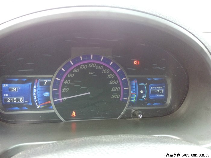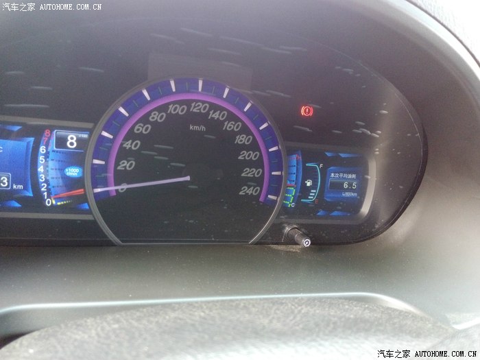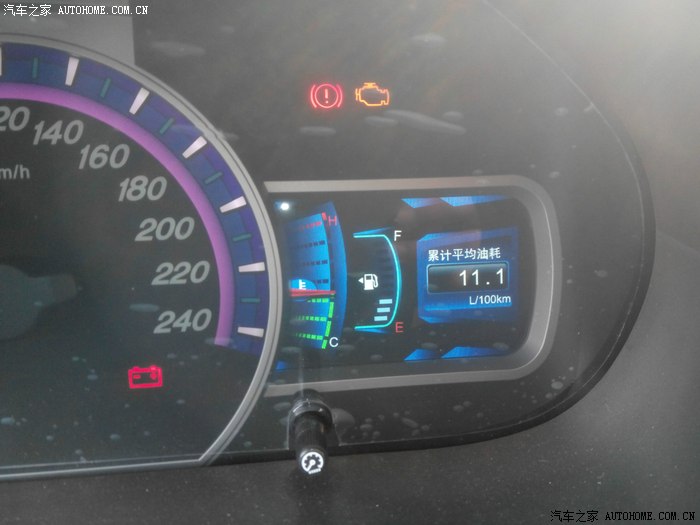 大家最关心的当然是油耗了,我来说一下实测的,到今天发贴时我加了7次油,每次200元,前5次加油是7.84元/升,后两次是7.63元/升,我每次都是还剩两格时加油,基本上是每200元跑350公里左右,我跑的路是1半郊区,1半市区,大约百公里7.3L油,仅供大家参考,我觉得还有下降的空间,以后还会向大家报告的。下面是仪表盘油耗照片,