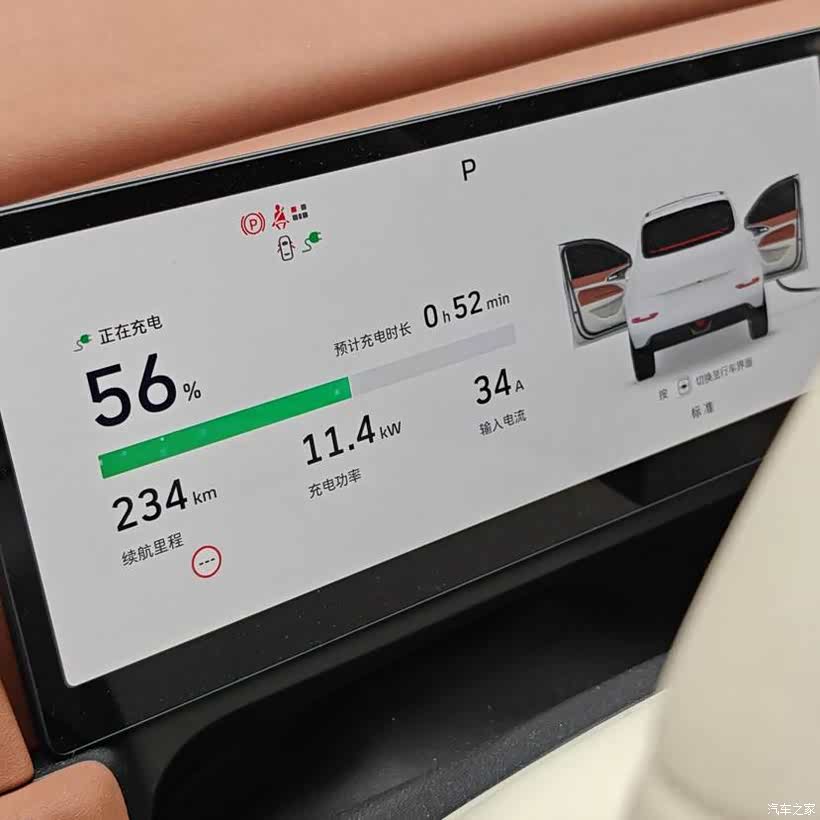 除了续航,还有就是个充电的问题,这车慢充8小时,之前我都是晚上用慢充,反正一周才充一次,放一晚上就行,谷电价格还低。记得这车从30%充到80%,快充只要半小时,今天过来临时补电,我接上充个电枪的时候是56%的电,充电电压是358V,显示的预计时间还要52分钟。