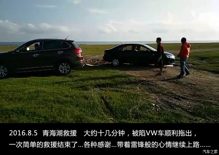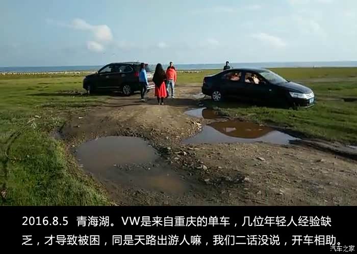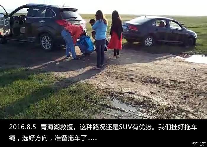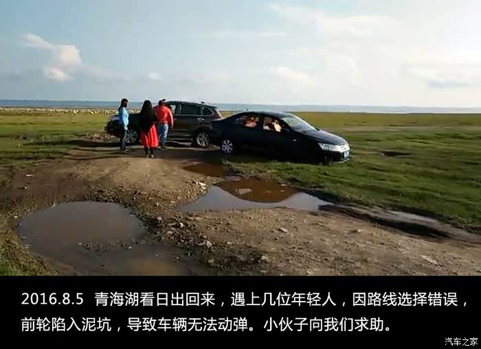 2016.8.5 第六天,早上青海湖看日出,从湖边回来的路上,遇见几位来自重庆的年轻人,因经验欠缺,路线选择错误,导致车辆陷入泥坑,无法动弹,于是向我们求助,同是天涯出游人嘛,我们二话没说,开车相助。