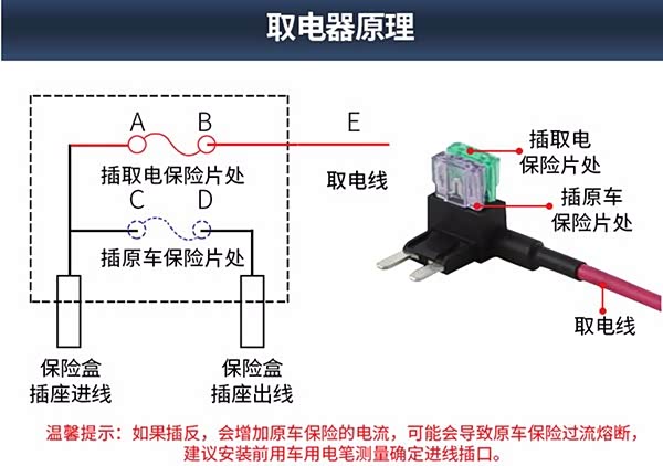 这也是为了防止万一取电线这一路出现过载或是短路,不会影响原车的任何功能。