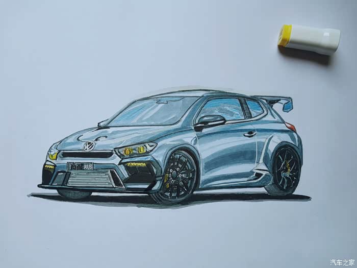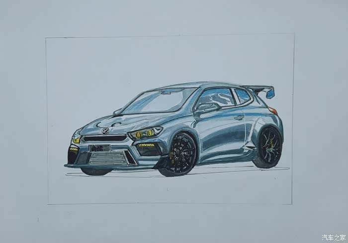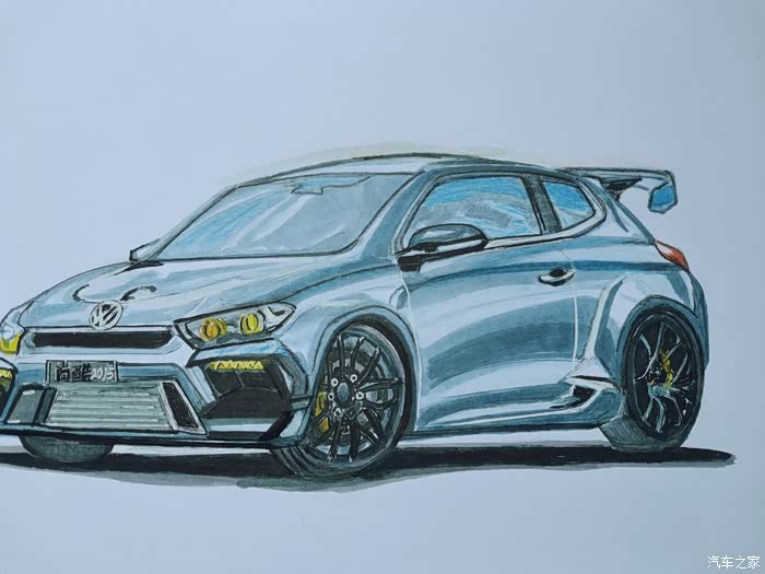 HELLO,大家好!今天为大伙带来的是,昔日被称为“陆地巡鲨”的大众尚酷手绘作品。尚酷(英文名Scirocco)拥有前卫动感的设计,被誉为“大众汽车有史以来最具动感”的双门跑车。作为一款全天候运动型跑车,尚酷低而宽的车身,流畅的侧面线条、宽厚的后轮拱,使这款运动型跑车随时保持向前冲的姿态。因其外形独特的宽体设计,加之酷似鲨鱼的前脸造型,尚酷又被称为“陆地巡鲨”,总是在不经意间扮演着扮猪吃老虎的角色。不过很遗憾的是,这位昔日的王者,已于2016年停产。