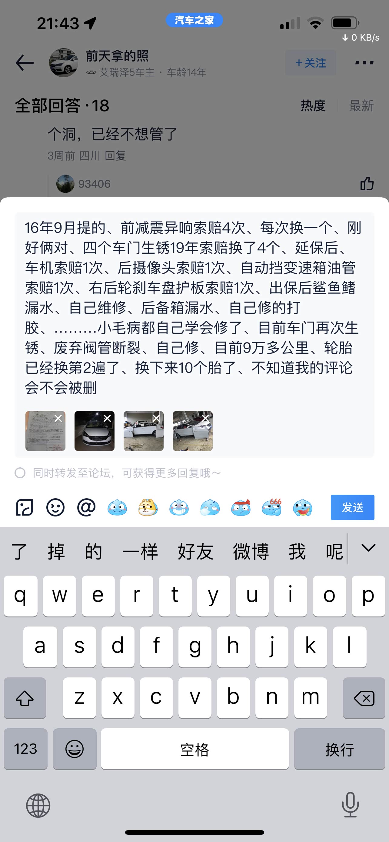 我也9年,17款,因生锈换了一个门,现在索赔另外三个门喷漆,现在不给换门,只能喷漆了。两个后轮眉也生锈了,都是没出过险的