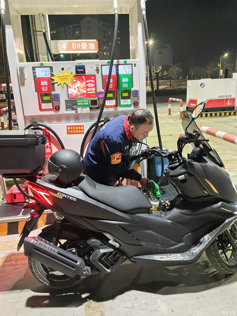第一箱油跑了361公里油表就不显示了,又跑了十来公里支加油站,想着在加油站把油跑光,结果打开油箱一看,底下还有一些油,再跑个一二十公里也没问题。7.58的油价加了75块。第一箱油算下来两毛多一公里。跑了二百公里国道高速,其他都是上下班跑的。