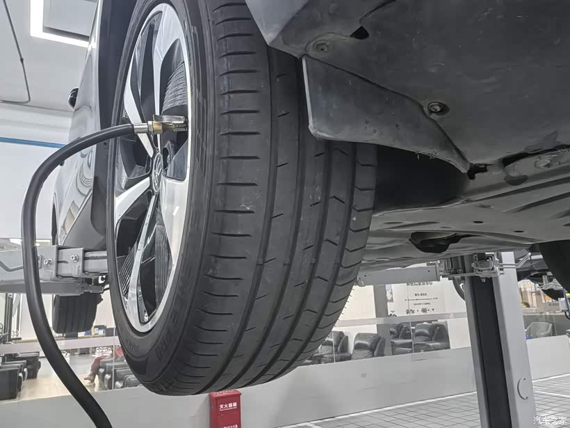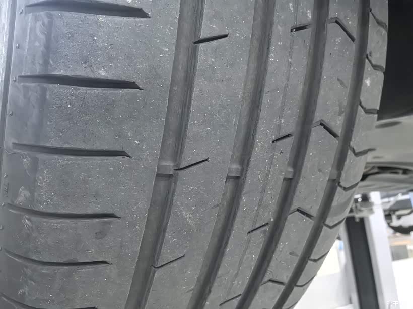 车子上架,售后小哥来喊,在技师的陪同下一起检查了底盘及轮胎线,不得不夸一下原厂的佳通胎,整车已经8万多公里了,后轮的胎离安全线还有很厚,感觉还能再跑个3-4万公里。