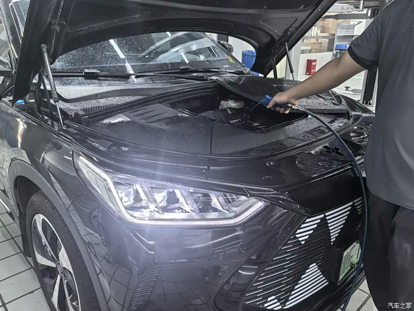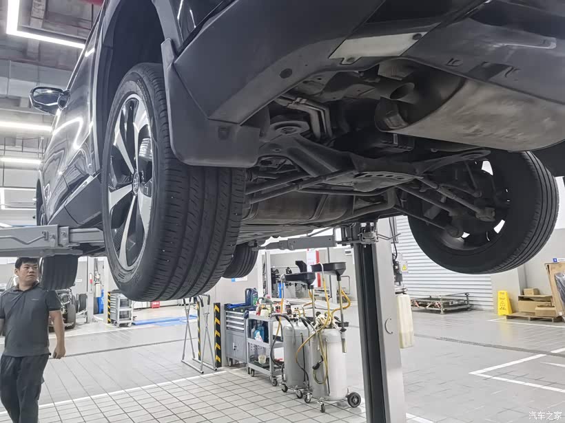 保养流程照旧,轻车熟路。跟售后混得熟,招呼一声,车就直接滑进车间。接待小哥麻利套上三件套,我丢下一句“纯电保”,便把车交出去,等它自己上工位。