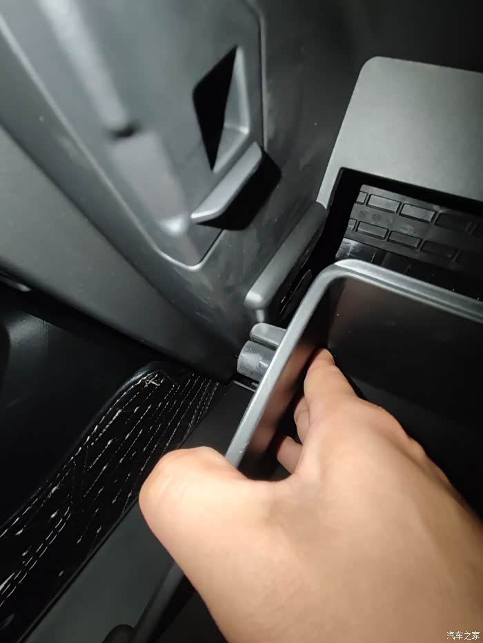 准备一把一字螺丝刀,打开副驾驶位的储物箱,一字螺丝刀把右侧的塑料螺丝往车尾方向旋转,拧下塑料螺丝以后,右侧只需要把卡口往左侧推一下,储物箱就拆下来了,空调滤芯就在那个黑色的格格条子里,用手捏住黑色格格条右边的卡扣往外拉,就可以看到空调滤芯了,把空调滤芯取出换上新的,然后其他步骤反着操作就OK了。