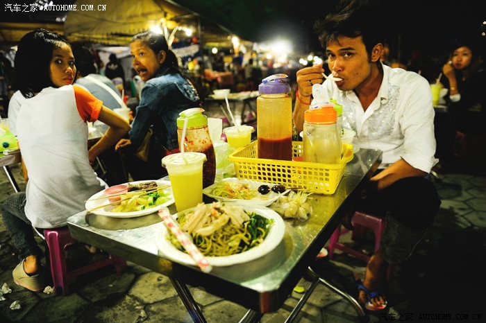 再看看夜市里其他的本地人,他们的脸上挂着高棉式的微笑,好奇地盯着你看,十分友好。只要你的相机对准她们,好们不会厌恶地躲开,反而站定,咧嘴,露出灿烂的笑容,给你摆一个自认为满意的POSE。