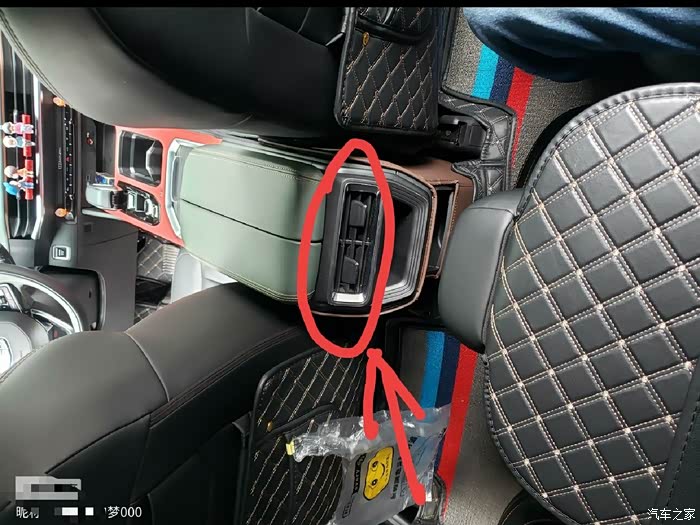 扶手箱空调:左右拨动可打开关闭风口,此处出风跟随第二排扶手箱后风口同步出风