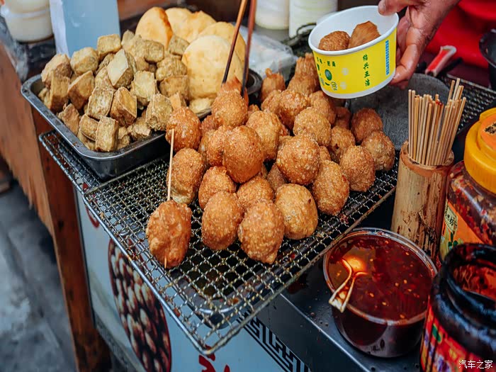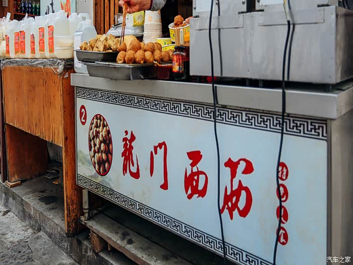 来龙门古镇游玩,必须要品尝一下龙门面筋,六块钱一份五个。制作方法:1.把小麦磨成粗麦粉,然后摊凉,再加食盐用水搅拌,放半个小时左右。2.等到面团透亮后,用手掰开有丝状,就把面放到竹编织的小方孔面筋箪里,在盛满水的大盆里一遍一遍的洗,让细麦粉和麦皮从方孔中漏下去,到大盆里沉淀。3.留在面筋箪里的就是面筋团了,洗的次数多了剩下的才是精华,叫做“面精”。4.再用手把面筋掐成团子,做成碗状,再把笋干、韭菜、胡萝卜、豆腐干、香菇、鲜肉等馅料切成细丝丝的馅儿,把口包住成圆团。5.最后再放到沸腾的油锅里炸到金黄浮出油面。
