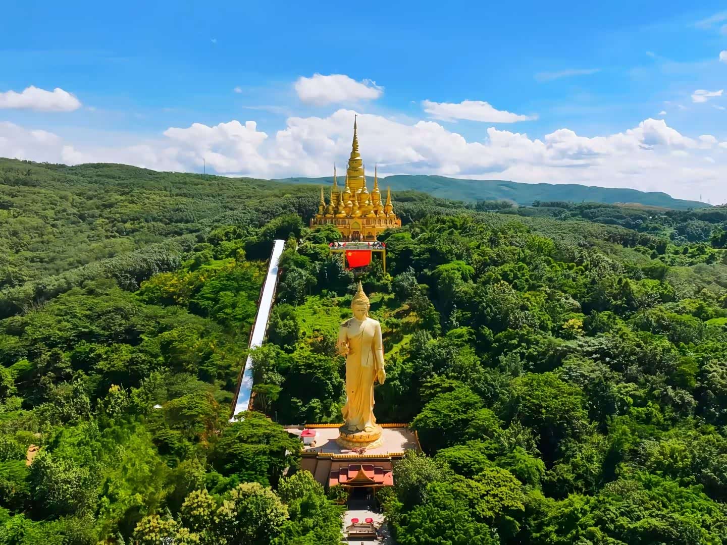 当雨林的风裹着金佛的梵音漫过肩头,白佛塔的檐角正挑着热带的云。傣式屋瓦叠着远山,彩色经幡在广场上织成风的形状——原来“说走就走”从不是莽撞,是让陌生的风撞进生活,把日常的疲惫揉进这一帧帧东南亚式的晴朗里。