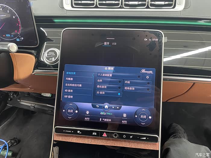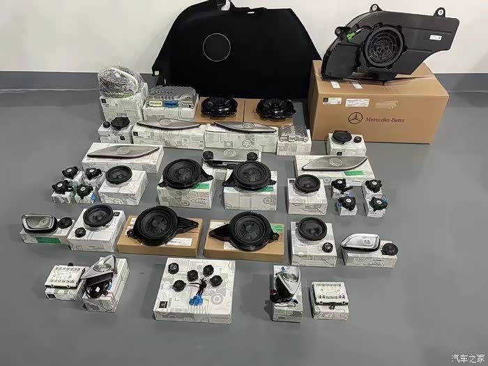 新款奔驰S级(W223)大柏林之声全车有31个扬声器,而且每个座椅的靠背位置还配备了两个谐振器!总功率达到了1750W。31个扬声器搭配8个座椅振荡器,实现4D音响、励磁器包括一个震动物质和一个接触板,如果有音乐或语音信号发送至励磁器,震动物质会与音乐同步震动。