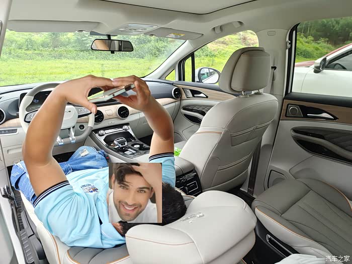 2、前排座椅还带有同级独有的“躺平”功能,只需要卸下前排座椅头枕,便可将前排座椅放倒至180°纯平,打造专属游艇级躺睡模式,无论是野外露营还是长途休息,都能得到最舒适的休息空间。“游艇躺”可以让你更高效的恢复精力。
