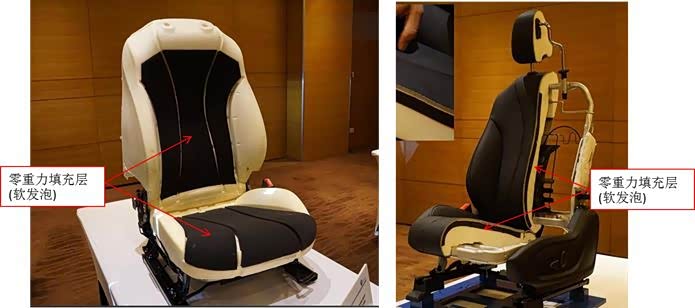 首先,最大的区别就是座椅的发泡面,也就是与人体直接接触的范围与状态保证情况。普通座椅要么过分柔软,要么过分坚硬。过分柔软的座椅无法保证长时间维持不变的乘坐姿势,如果是长途驾驶,柔软汽车座椅很容易压迫腹部而疲劳。过分坚硬,乘坐时间长了,坐骨长时间受力,容易引起屁股酸痛。零重力座椅既保持硬度的同时,在座椅发泡的表面 (与人体直接接触区域)贴有一层厚厚的超软海绵,该海绵具有高衰减、硬度特低、耐久性能好等特点,使坐在座椅上的乘员身体能够完全放松,从而使乘员达到了身处外太空失重时的舒适感!