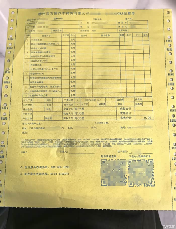 当初买车时,舍弃了其他很多优惠,就一门心思想要基础保养终身免费,如今第三次保养了,感觉真香!终身基础保养免检查工时费,所以本次费用全免~建议经常用车的小伙伴在买车时可以问下有没有这个,长期用下来省得不是一点点。
