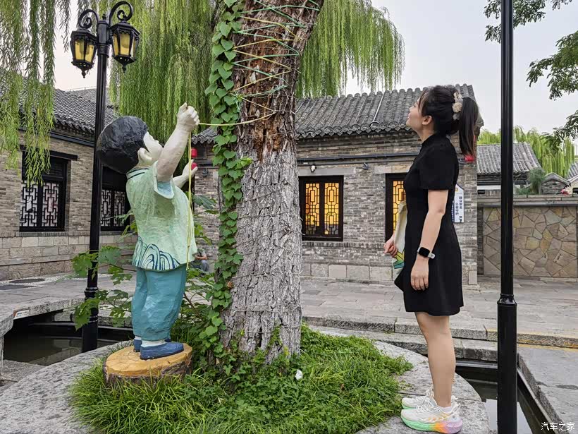 到了曲水亭街附近,停车位规划的挺多,很容易找到合适的停车位,周边有几个便民停车场,奕炫MAX的操控性不错,窄路掉头、停车入库都很顺手,新手也能轻松驾驭。停好车往街里走,刚到门口就被那只“鱼”给吸引住了,灯光和水流搭配得恰到好处,如梦如幻的。