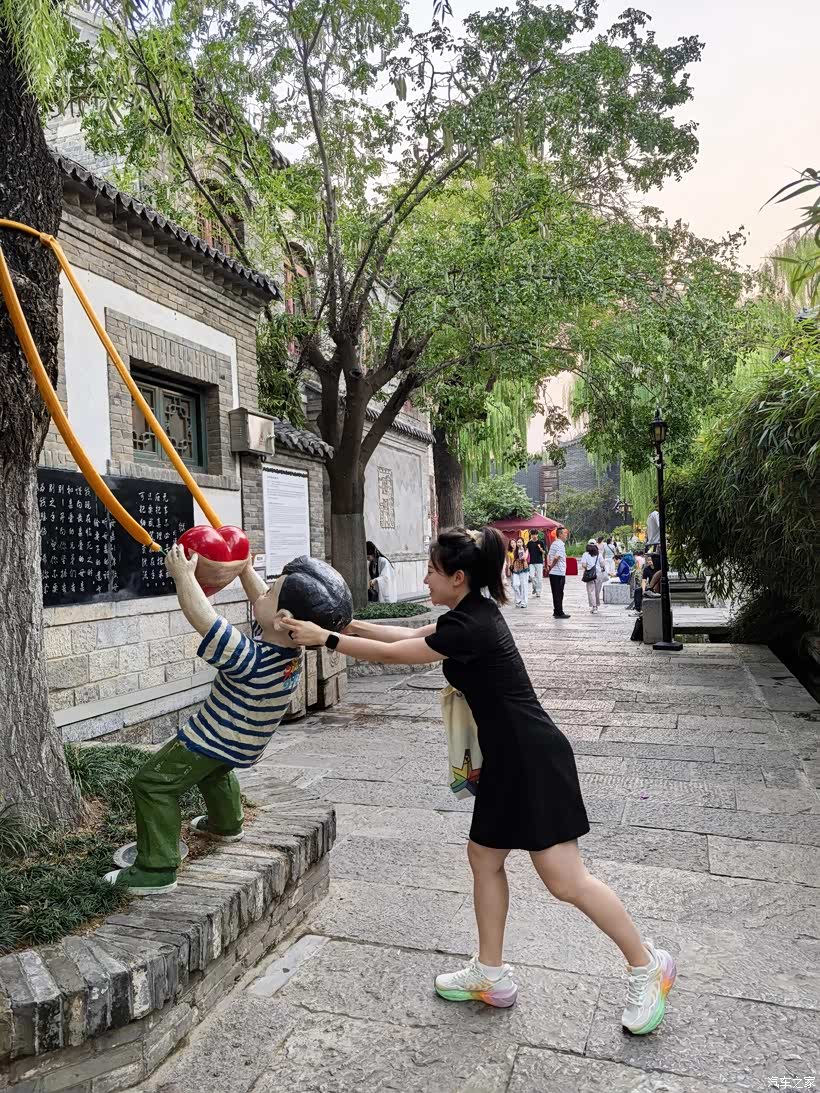 沿着青石板路往里走,两边全是依依垂柳,泉水顺着街边的石渠缓缓流淌,偶尔能看到几位大爷在水边悠闲地喝茶聊天,那种老济南的烟火气一下子就出来了。