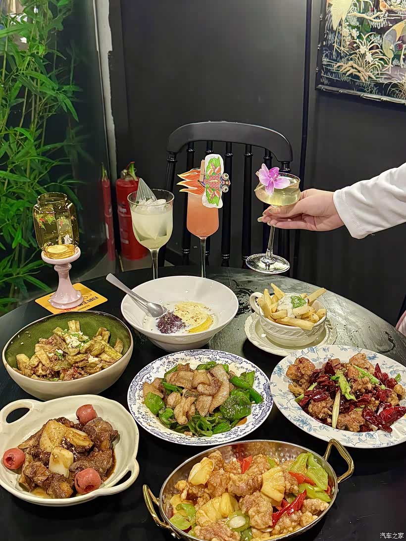 桂花小排骨年糕,排骨炖得软烂入味,年糕吸足了桂花的香气和排骨的汤汁,酸甜口的一点都不腻,我一个人就吃了大半盘。辣椒松板肉也超下饭,肉质紧实有嚼劲,辣椒的香味完全融入到肉里,配着大米饭我直接干了一碗。肉末茄子分量超足,满满一大盘,茄子炖得软糯,酱香浓郁,巨香!还有那个叫泉上纸鸢的甜酒,造型特别精致,杯子里夹着一只小纸鸢,甜酒的味道很清新,度数不高,女生喝也完全没问题。