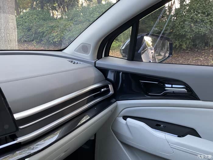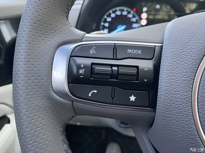 手握上方向盘,皮质细腻。原地试了一下转向,我惊讶这么大一台车,方向盘居然这么轻盈。指向性很准,属于女生开也完全不费力的类型,上面的按键回馈力度很清晰,质感不错。