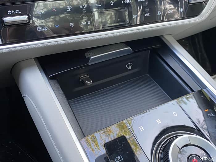 下面的旋钮式换挡也很精致,给前排留出了大片的空间,显得很通透。