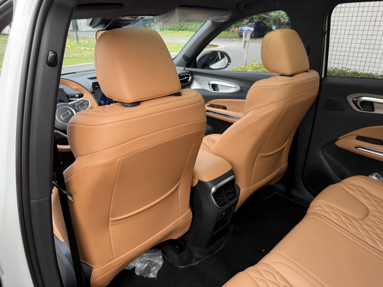 空间真的够用,2772mm轴距让后排跷二郎腿无压力,30多处储物格刚好收纳随身杂物,后备箱塞露营装备+行李箱还绰绰有余。灵芝皮座椅软乎乎的,前排加热功能在早晚温差大的时候超实用,怀挡设计操作起来也方便。