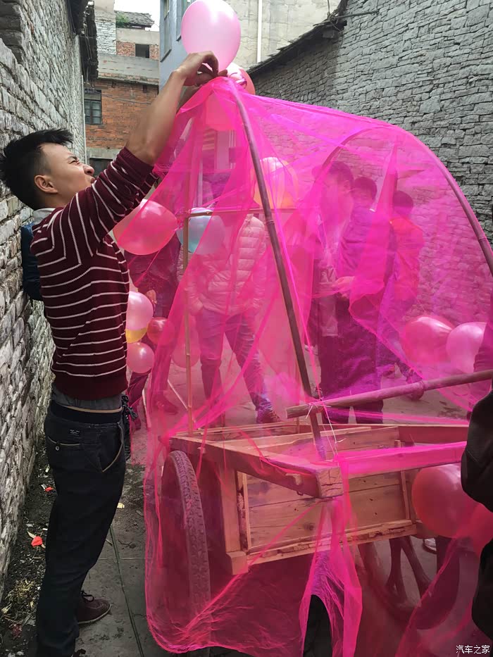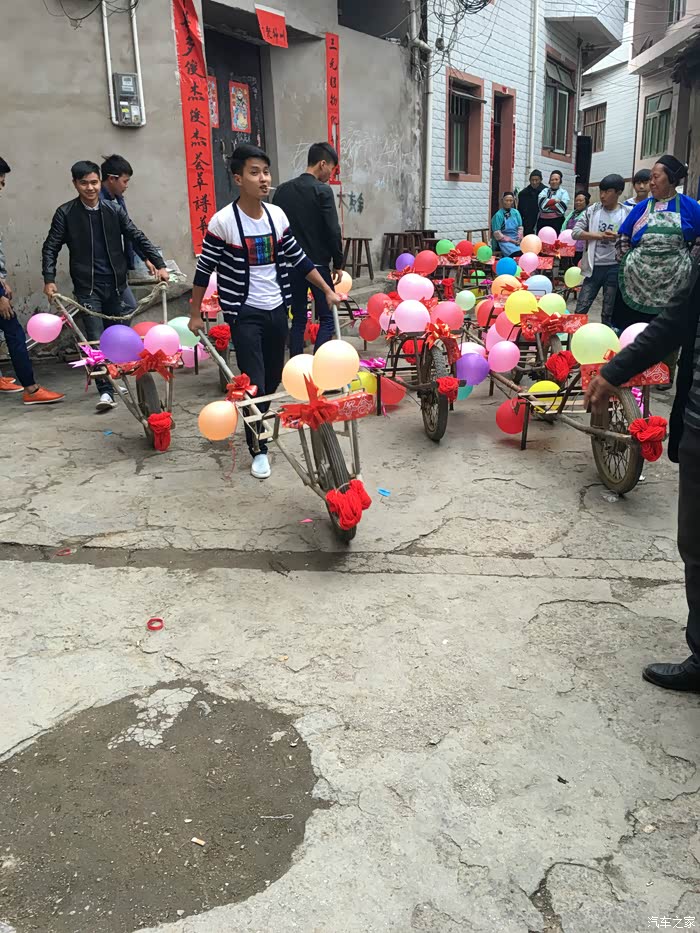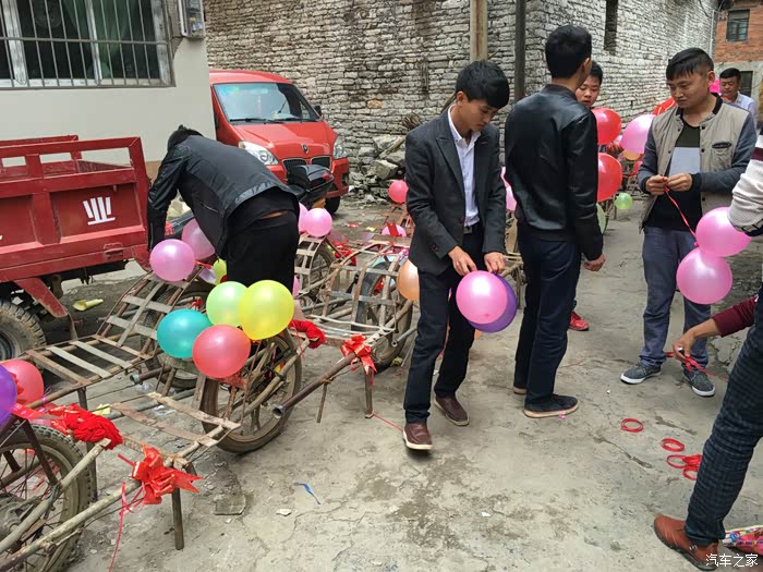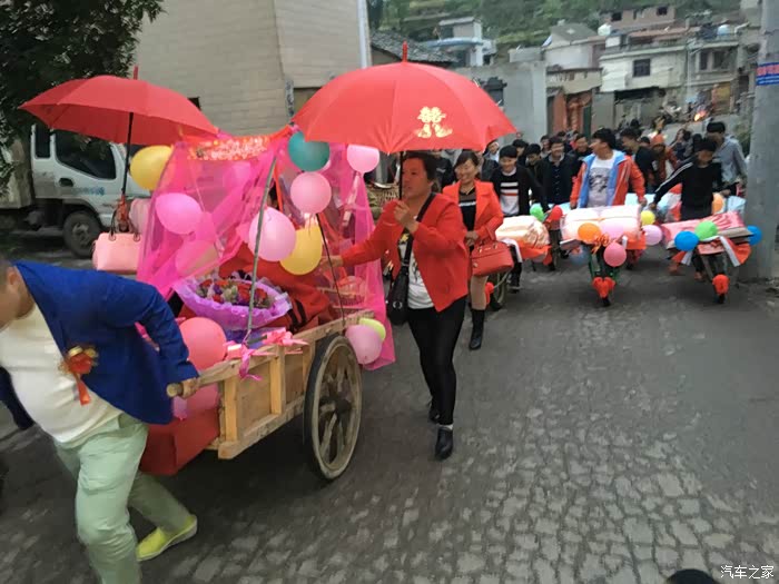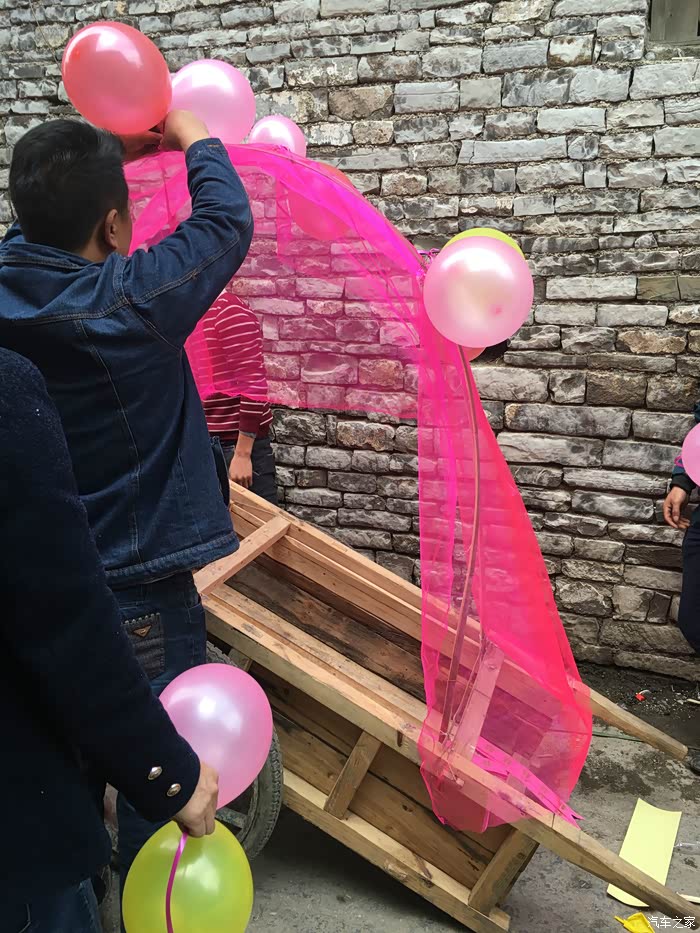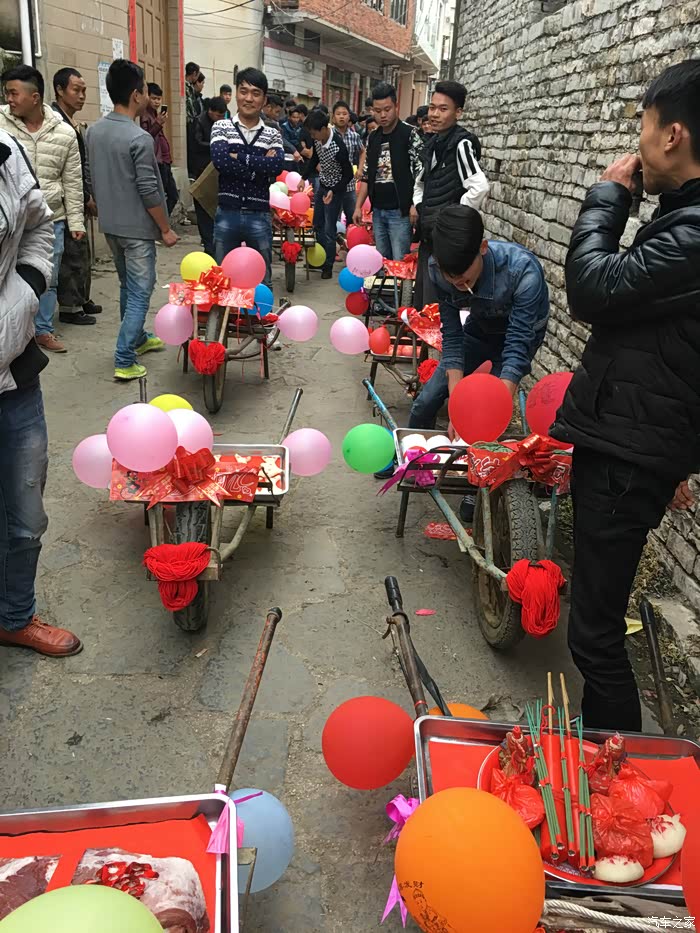 前后花了几个小时终于是布置好了。接下来就是整队,装彩礼,准备开路新娘家