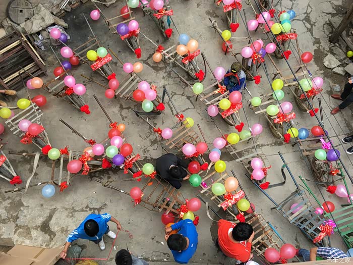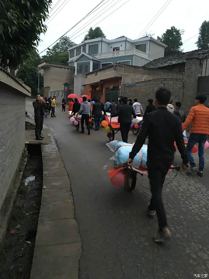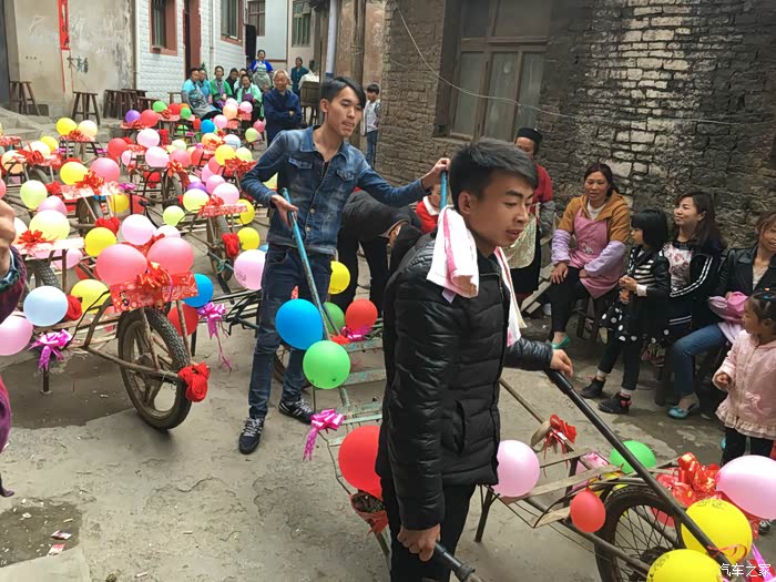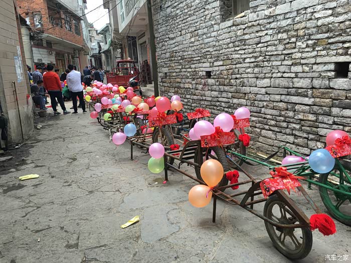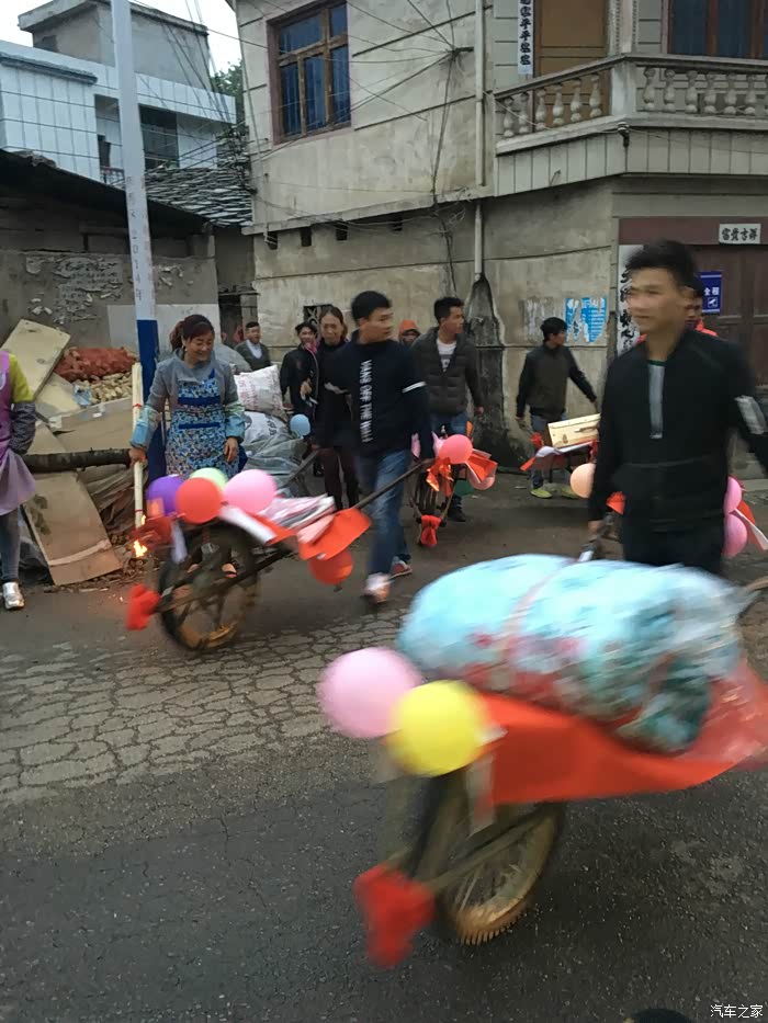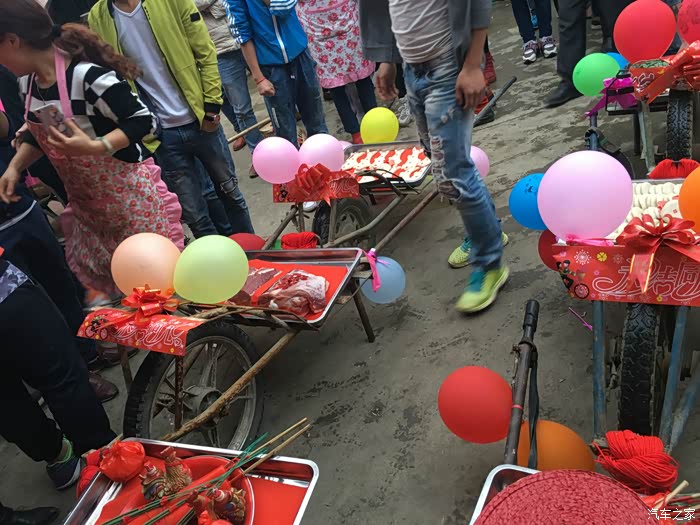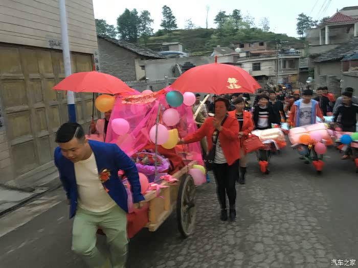 前后花了几个小时终于是布置好了。接下来就是整队,装彩礼,准备开路新娘家