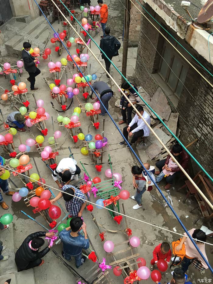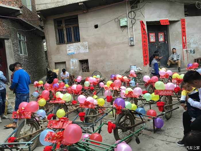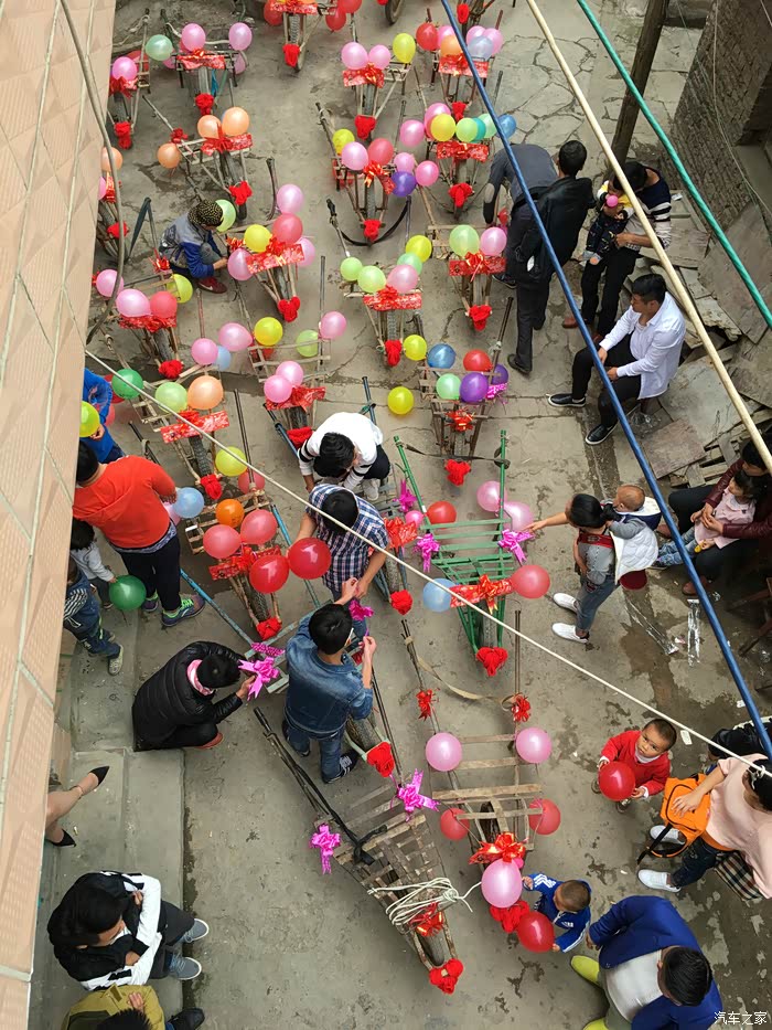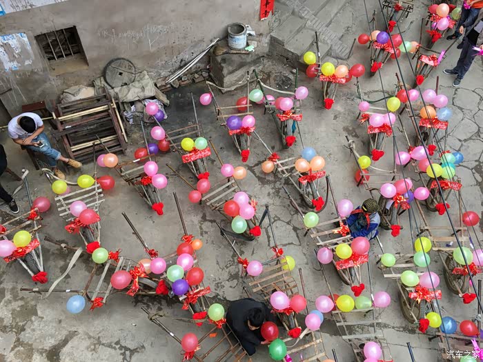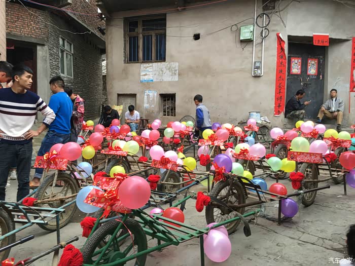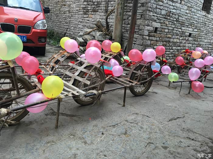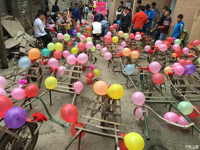 说了这么多,该我们今天的主角登场了,我相信各位看来我们的车队后上面的什么什么豪车都弱爆了,因为我们的是鸡公车婚车队。鸡公车是一种历史非常悠久的独轮车,据说在诸葛亮的时代就已经有了。