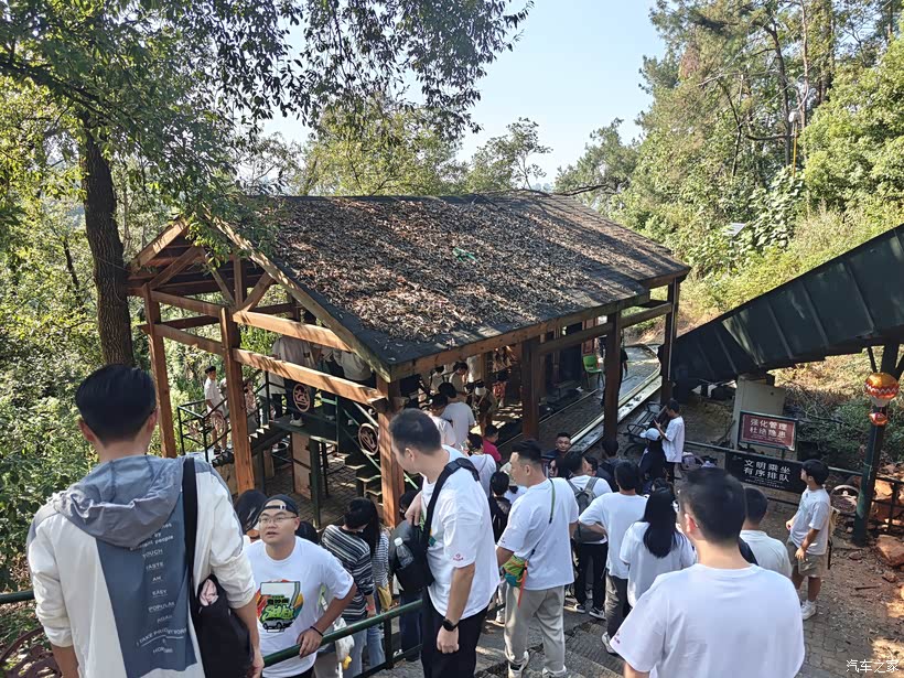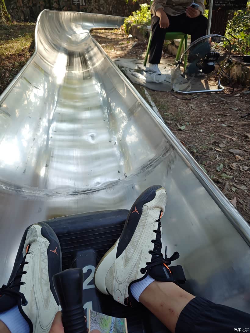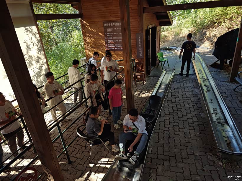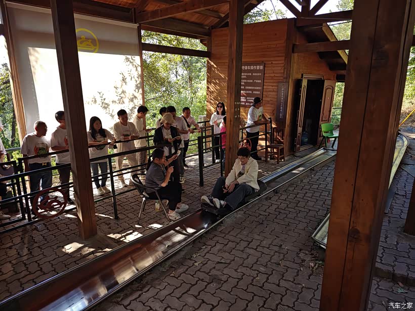 到达山上之后继续排队等待滑道项目,来这里玩的人群还是非常之多的。每个人都比较对这个项目好奇,经过一个多小时之后终于轮到我了,分发一个小皮艇之后坐在里面利用高低差远离向下滑行,这种滑道的速度没有想象中那么快,但还是要在滑行的过程中保持平衡。