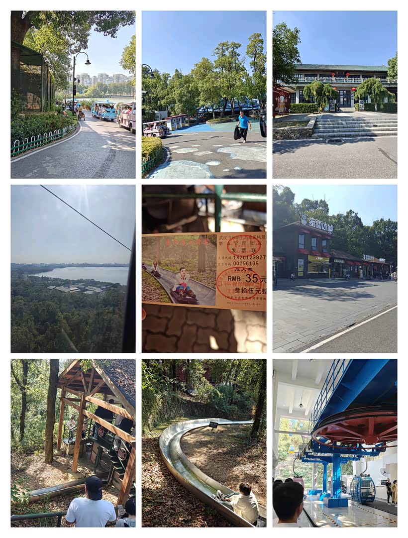 这次龟山景区的票价一共是35元每人,四人一共花费了140元,其中包含索道项目和缆车项目。票价来说我认为是比较合适的,在其他景区这样的价格绝对是下不来的。领完门票然后步行到磨山索道,按照顺序排队进行乘坐缆车上山,坐上缆车之后循序渐进的进行上山,在上山的过程中坐在看车里面可以看到非常多的武汉景色包括黄鹤楼以及长江大桥等。